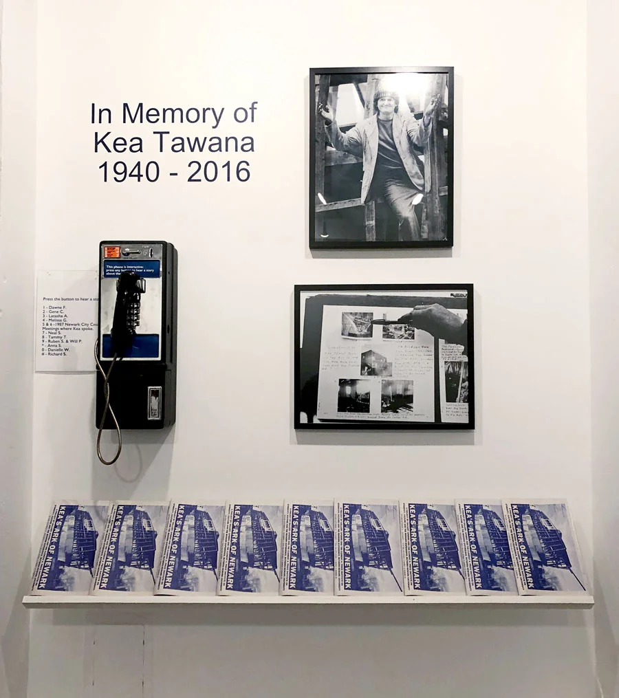 The gallery installed a shelf beneath a payphone where visitors could listen to an oral history as they paged through Kea’s story and timeline. In addition to the info, the newspaper folds out into a poster with the event details. This along with with an exhibition of more than 30 handmade stained glass windows, historical artifacts, images, and texts helped to create an immersive experience.