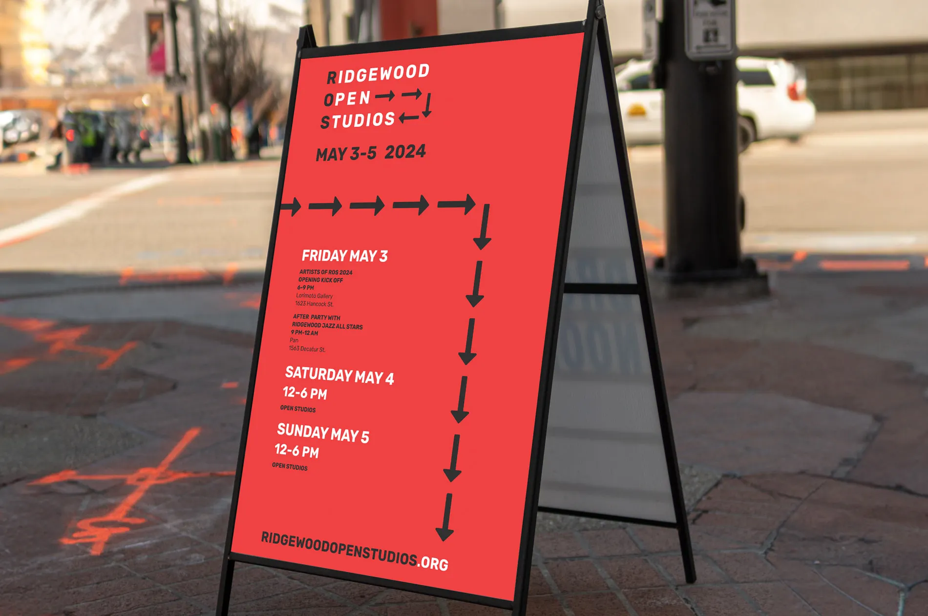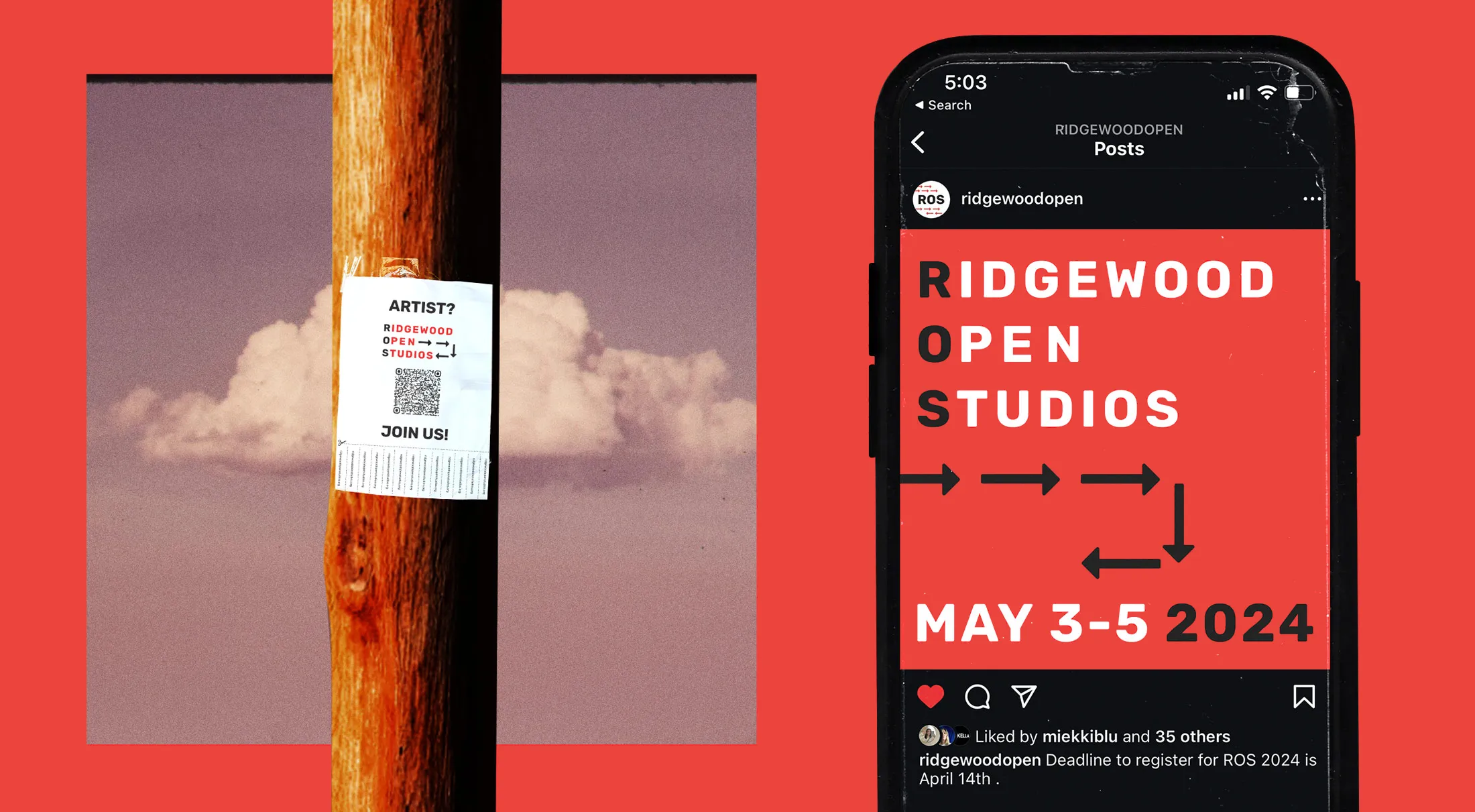Ridgewood Open Studios, a local event where artists open their studios to the public, had been on hiatus since 2019 due to COVID. In preparation for its return in 2024, I contacted the organizers to help with branding. With a limited budget, the goal was to create a simple yet effective campaign to engage the local art community.