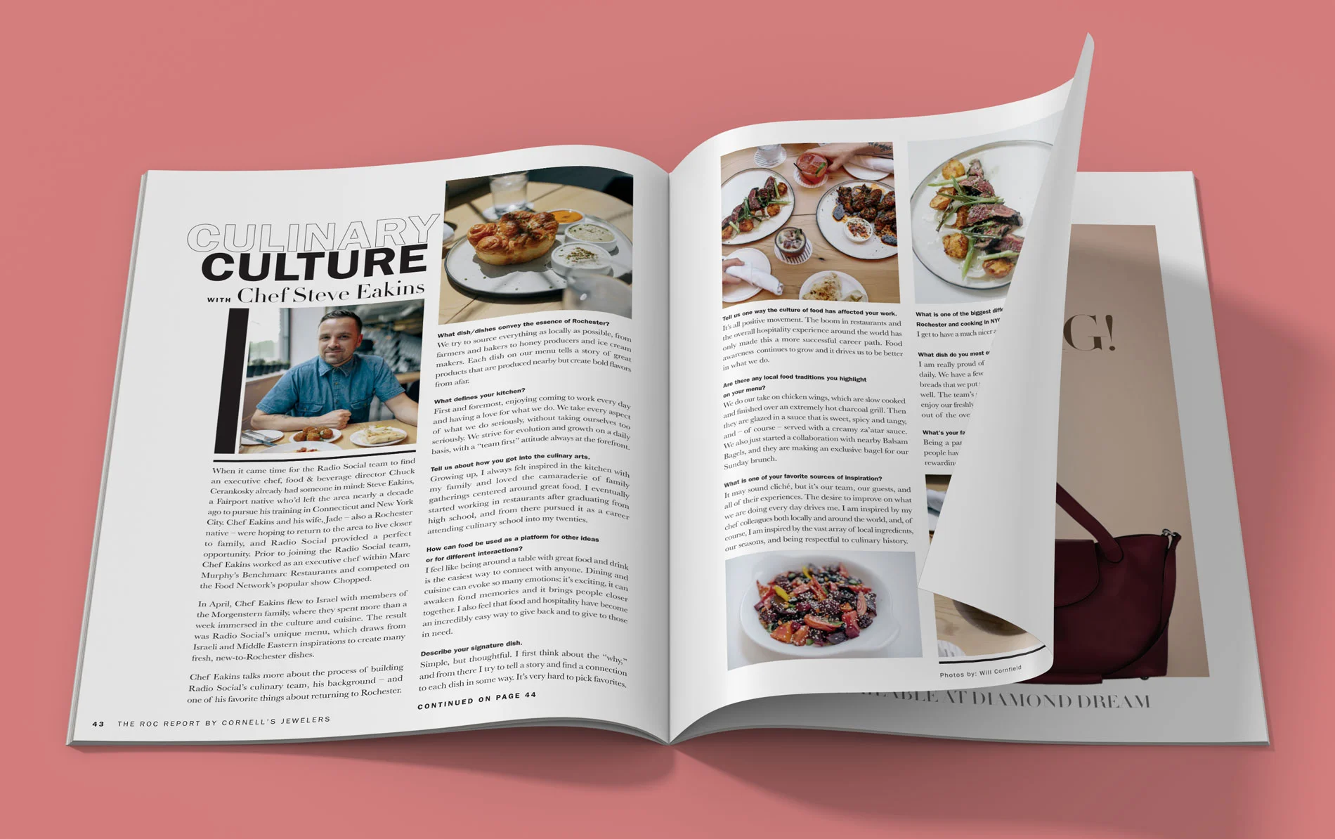 We met directly with the client in Rochester to provide an in-store photoshoot while gathering their insights and background on their community. Following up we retouched photos, collected content and advertising from external vendors, and proceeded to iterate on pagination and layouts with the client making sure we were aligned on the new format.